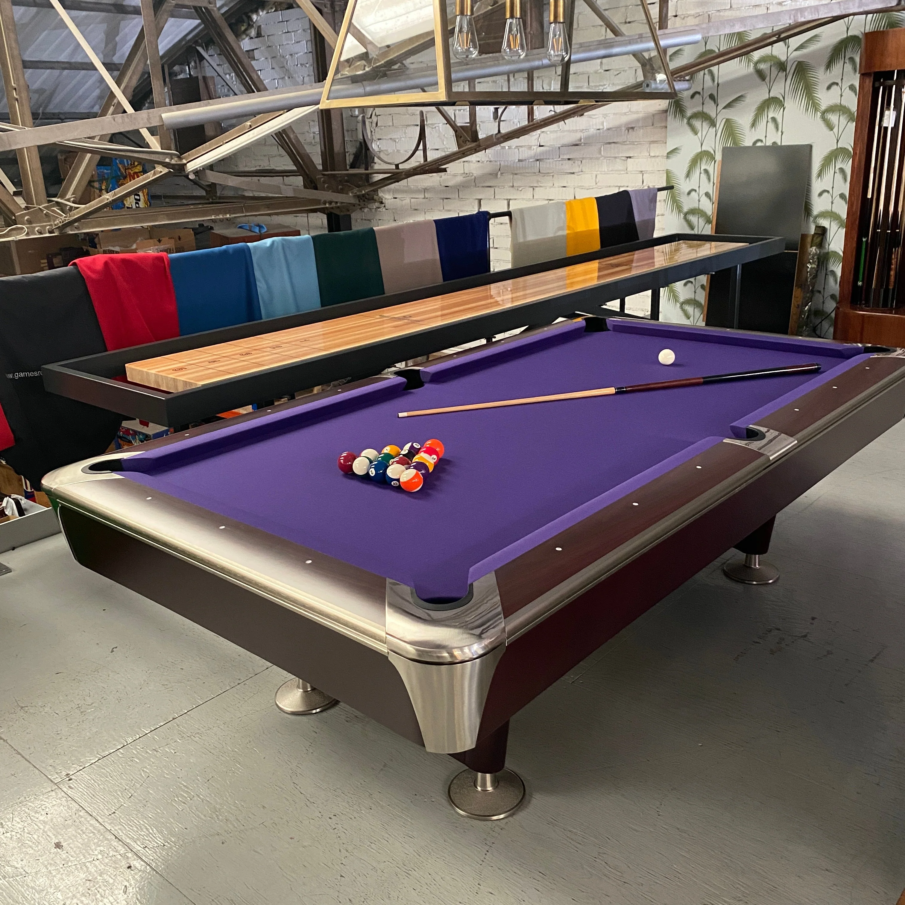 The table comes as standard with the very best quality accessories from Belgian Aramith, undoubtedly the worlds best pool ball manufacturer. Naturally the cues and accessories are tournament standard. It is possible to upgrade the cloth to the highest quality British made Hainsworth cloth.