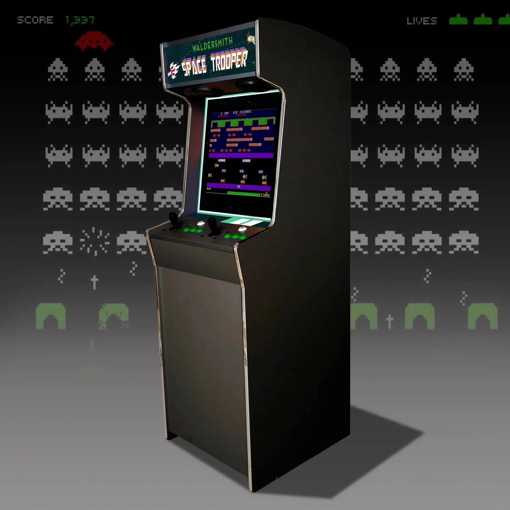 Are you a fan of a particular iconic game, or do you want to make money in your commercial environment? Why not create a legitimate, almost identical replica of an original arcade machine by commissioning a customised variant of the Space Trooper with a single featured game and corresponding cabinet graphics.