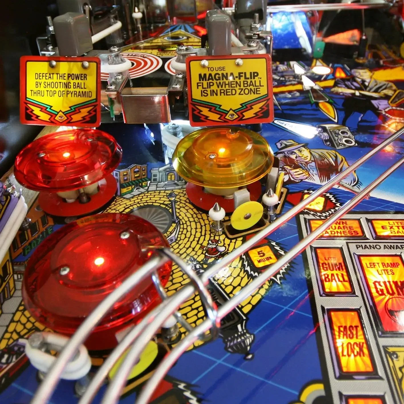 A true collector’s favourite, The Twilight Zone is the highest-rated electronic pinball machine of all time on the Internet Pinball Machine Database. Its innovative features include the Powerball, a lightweight white ceramic ball with unique speed and movement, and the Powerfield, a magnetic mini-playfield that propels the ball using unseen forces - a clever nod to the show’s mysterious themes. Authentic sound effects and music from the original series heighten the atmosphere, making every game a cinematic experience.